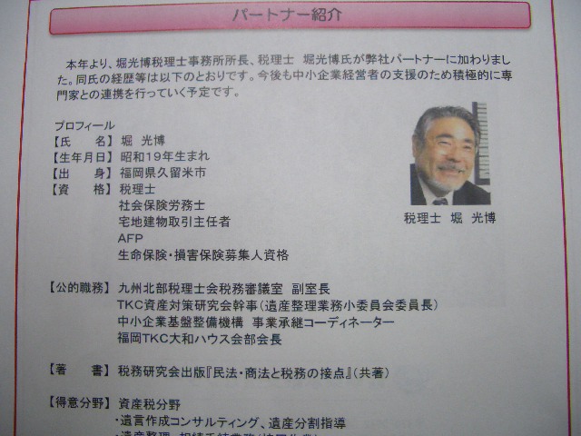 今年になり独立開業された堀光博税理士事務所、所長 堀光博様。