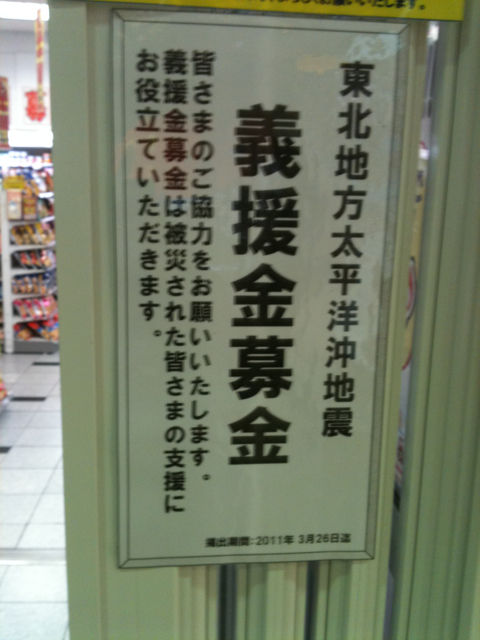 各コンビニにある義援金募金、