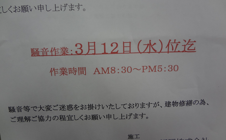 騒音作業が午前中までであれば嬉しい