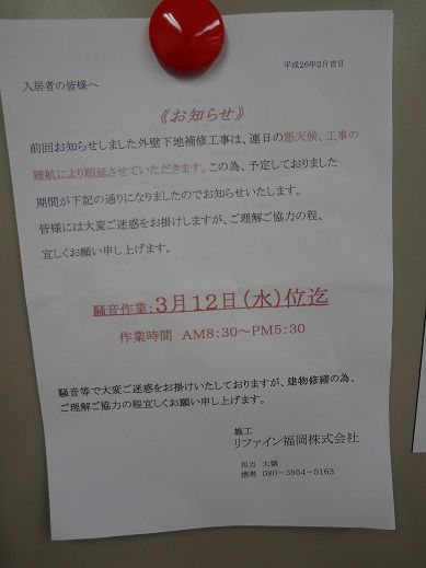 その騒音作業が一段落するのが、