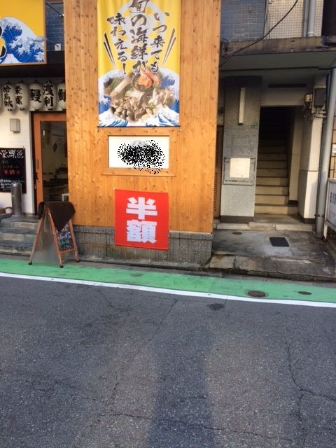 とした「半額」の幟(のぼり)