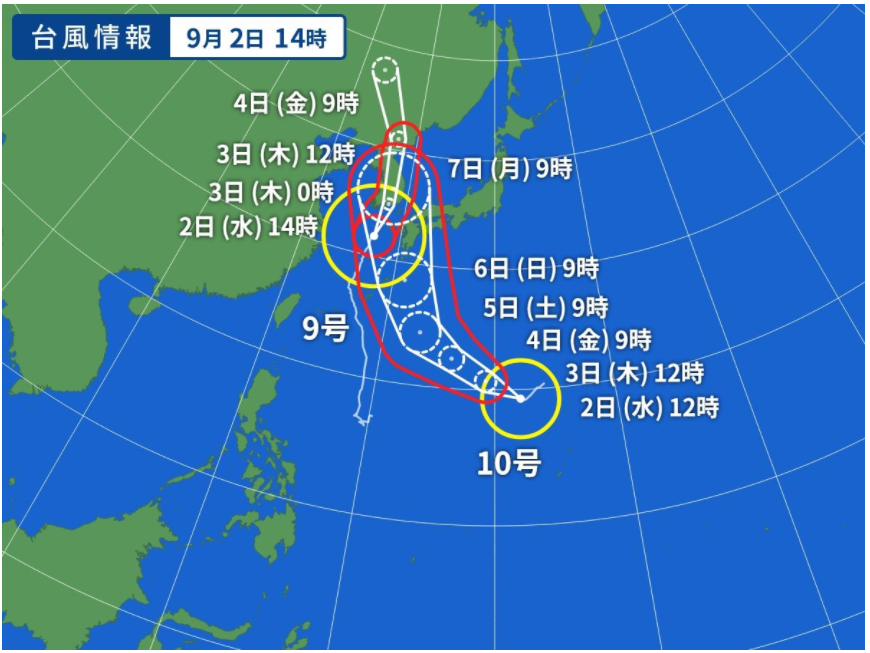 台風9号と10号は、