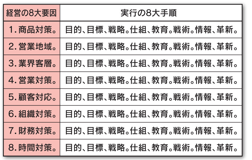 経営の8大要因から考察する。