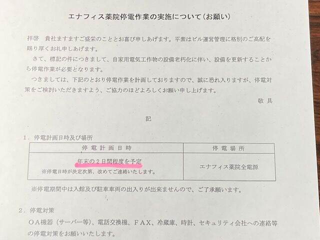 ◆エナフィス薬院停電作業の実施