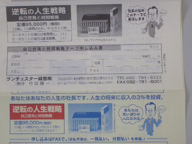 当社の「逆転の人生戦略」チラシを2種類をお配りしてます。